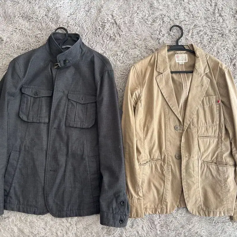 다크 그레이, 베이지 자켓 2벌 세트와 덤 라코스테