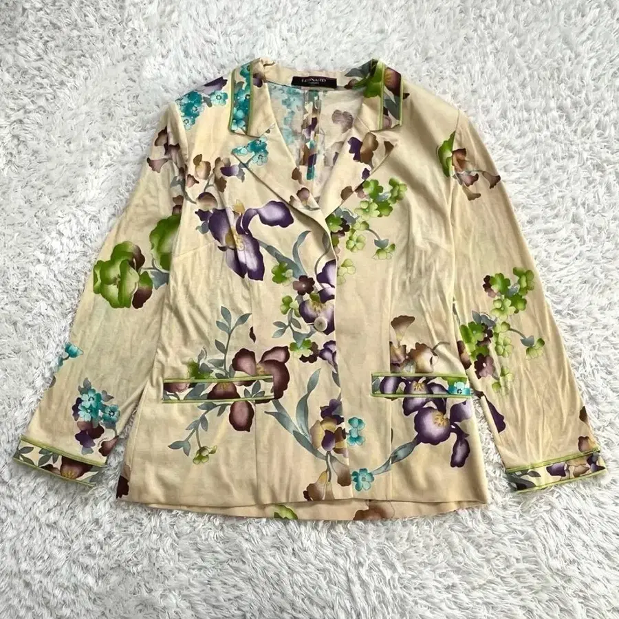레오나르 꽃무늬 자켓 면 100% 얇은 소재 XL 1B 싱글 테일러드