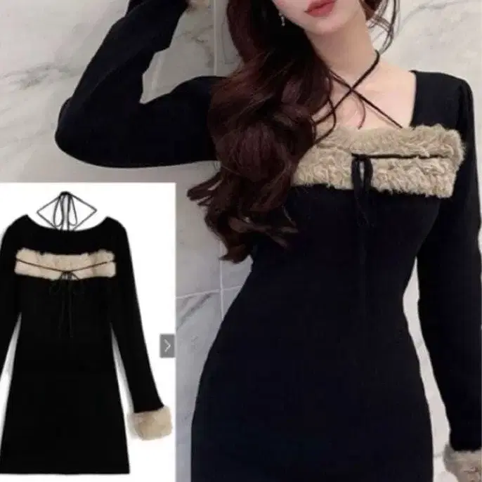 GRL 그레일 퍼 홀터넥 리본 니트 원피스 [ru1388]