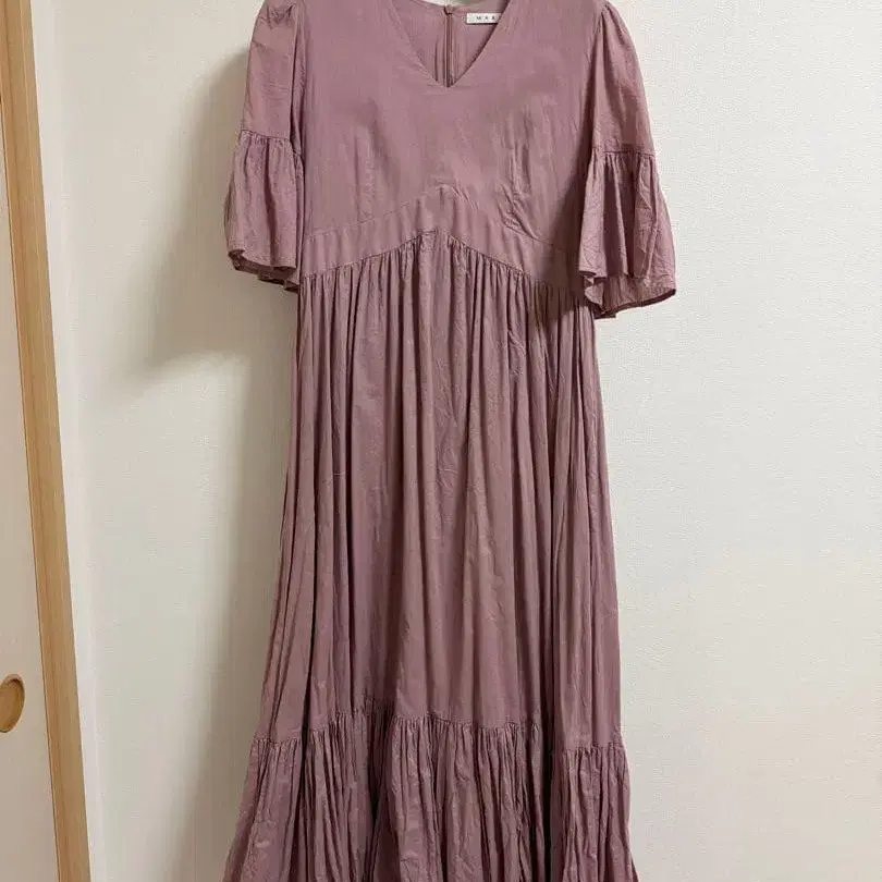 MARIHA 플레어 슬리브 롱 원피스 핑크 36