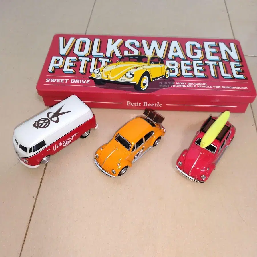 폭스바겐 모로조프 비틀 미니카 3개 & 초콜릿 캔 세트