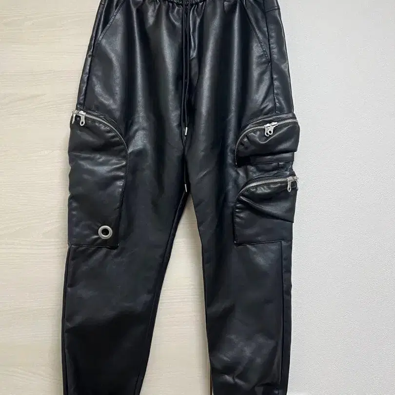 NO ID. BLACK 합성 가죽 포켓 카고 팬츠