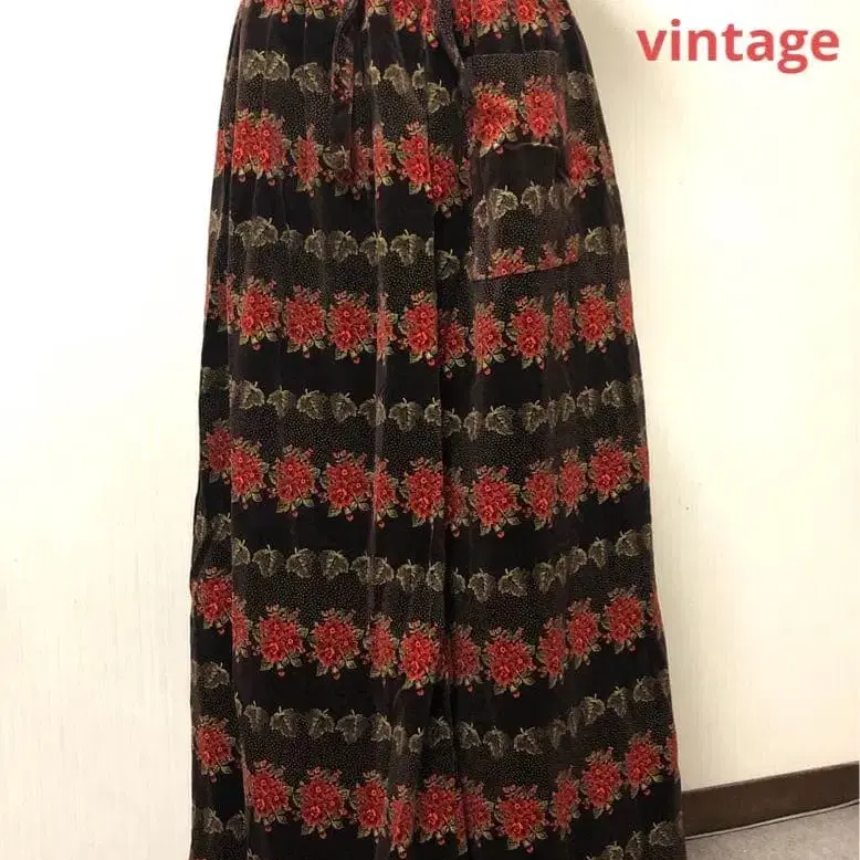 쇼와 레트로 70s 빈티지 꽃무늬 벨로아 원단 플레어 스커트