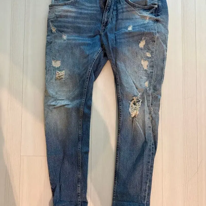 ZARA 데미지 가공 블루 데님 팬츠