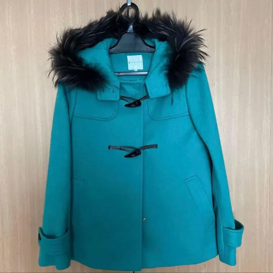 쿠미쿄쿠 퍼 달린 더플 코트 숏 기장 청록색