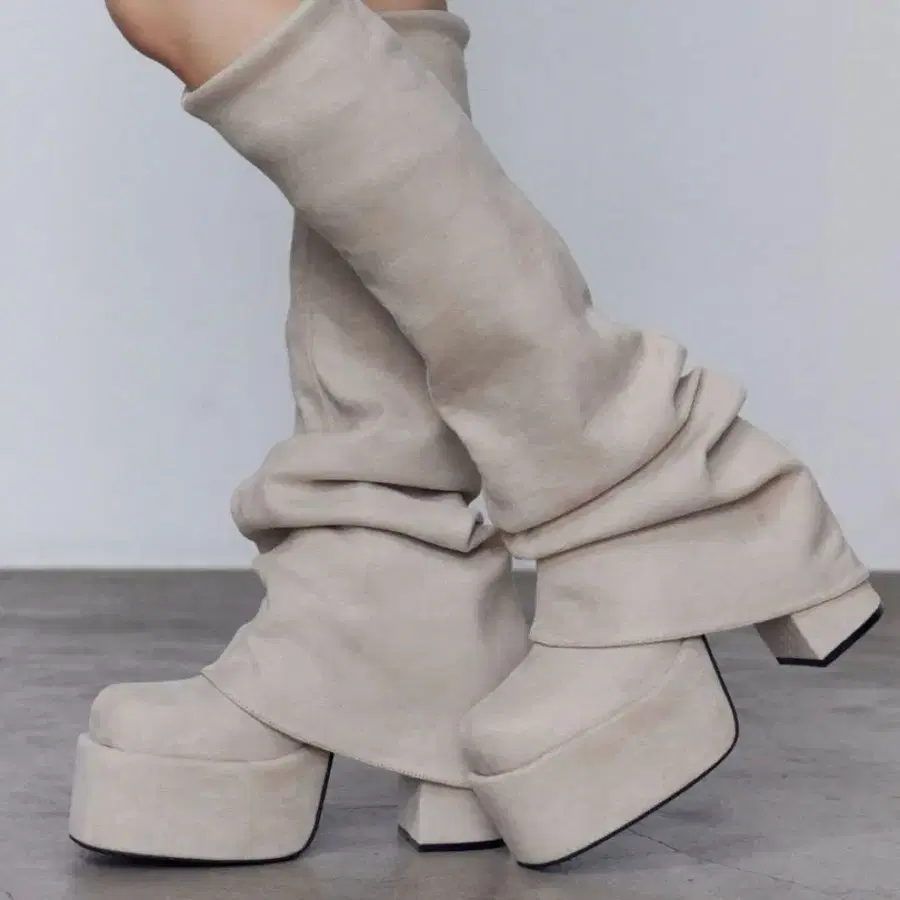 EMODA 그레이 스웨이드풍 롱 부츠 하이힐