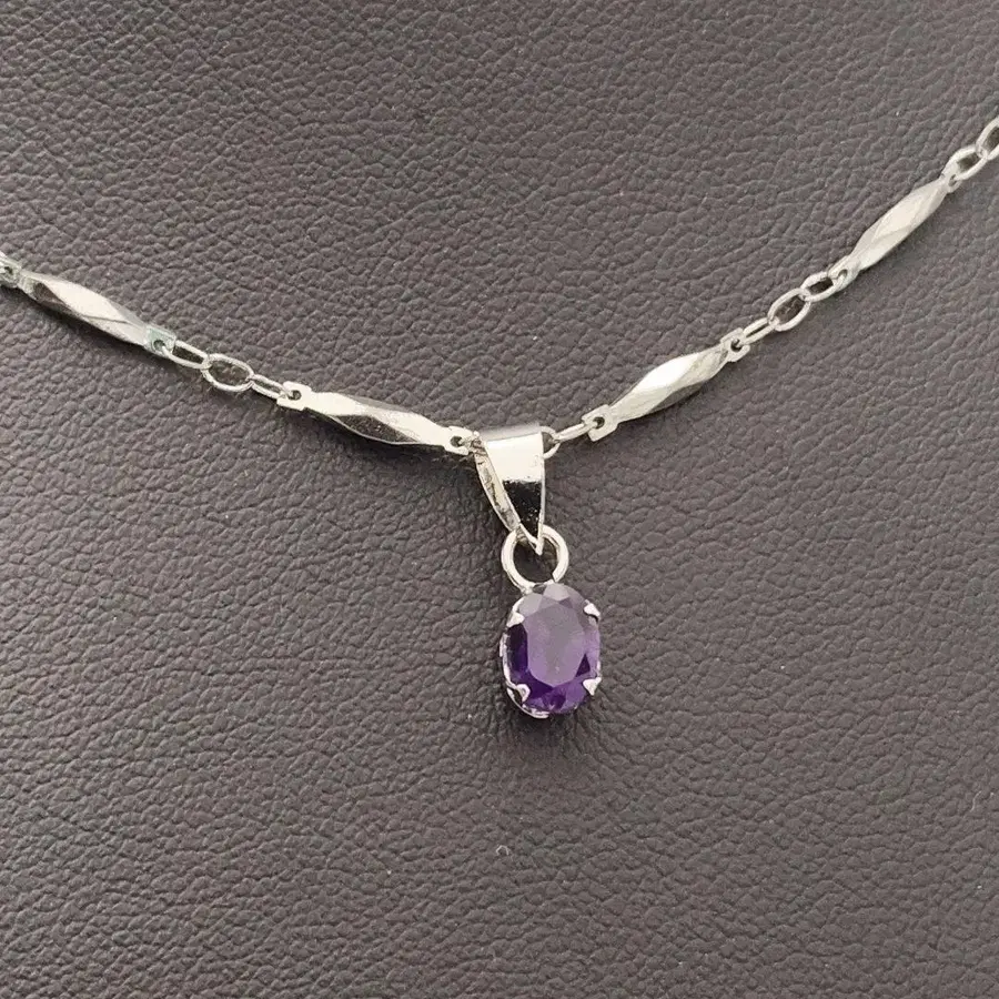 [ T ] 보라색 돌 PTP 각인 플라티나 플레이트 도금 롱 메탈 목걸이