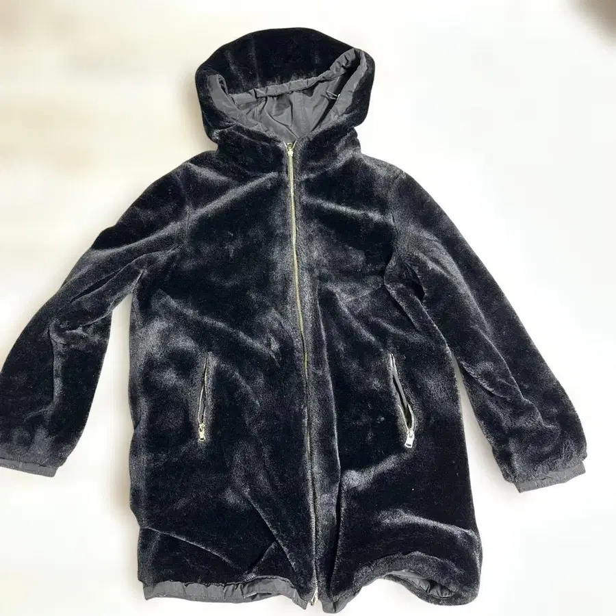 ZARA 후드 부착 리버서블 블랙 퍼 자켓 xs