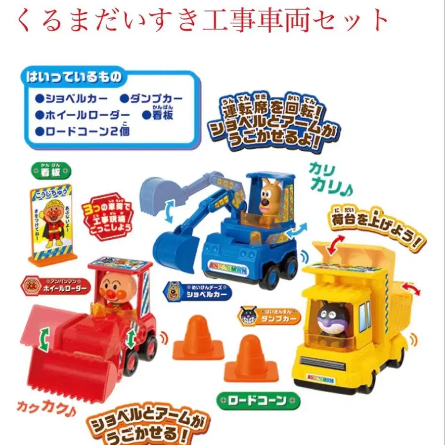 호빵맨의 휠 로더는 셔블과 암을 움직일 수 있습니다.