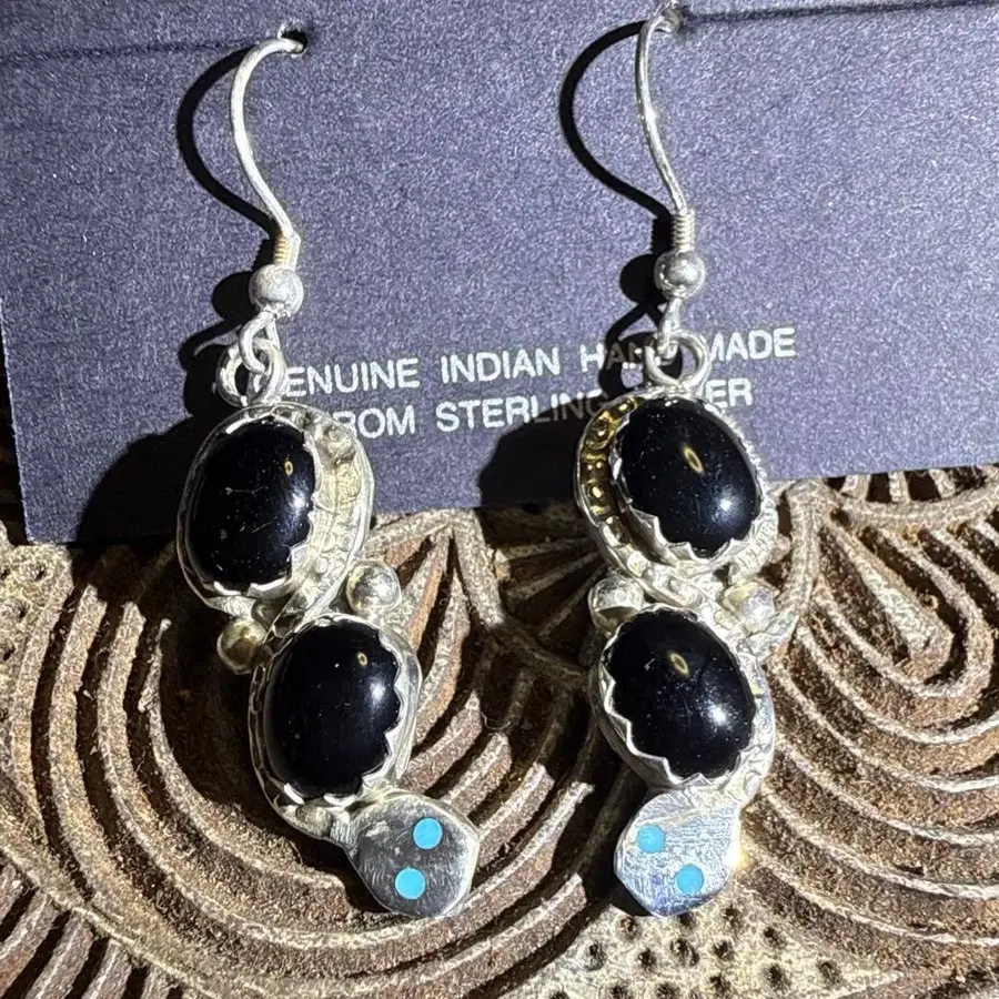 주니족 에피 칼라바사 귀걸이 오닉스 터콰이즈