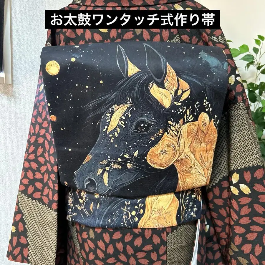 리사이클 상품인 나고야 오비에 원단을 꿰매어 오비(띠)를 만들었습니다.