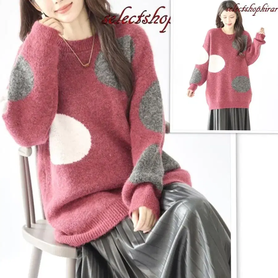 ★ 루즈한 사이즈 ☆ 부드럽고 쫄깃한 배색 도트 니트 풀오버 ★