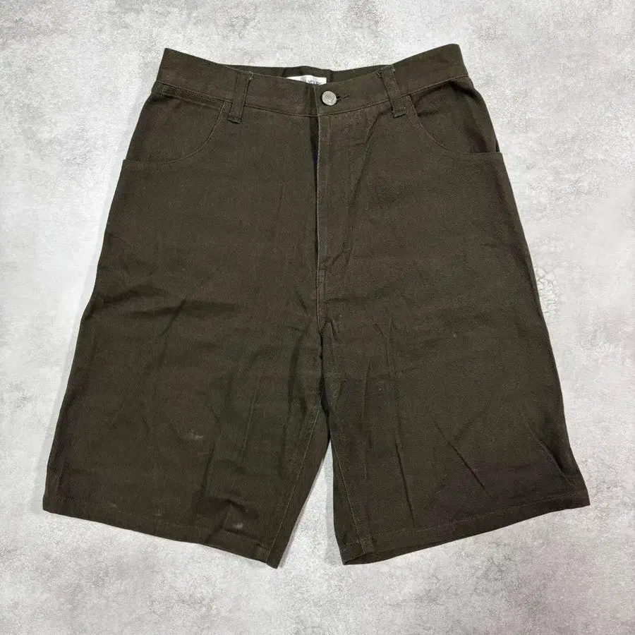 차분한 카키색 하프 팬츠입니다. 심플한 디자인으로 코디하기 쉬우며, T셔츠나 셔츠와 궁합이 좋습니다. 여름 캐주얼이나 아웃도어 코디에 활용하기 좋은 아이템입니다.