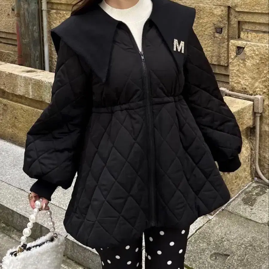 프로즈베일 빅 칼라 퀼팅 페플럼 블루종 M