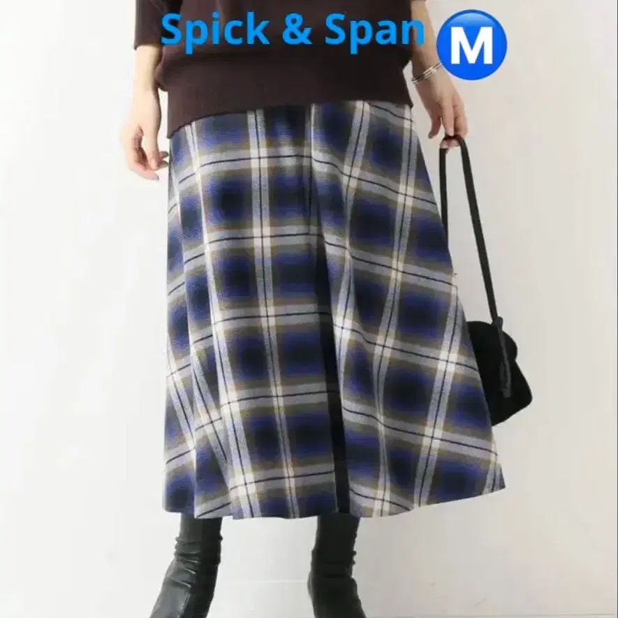 SpickandSpan 체크 소프트 플레어 스커트 모 혼방 사이즈 M