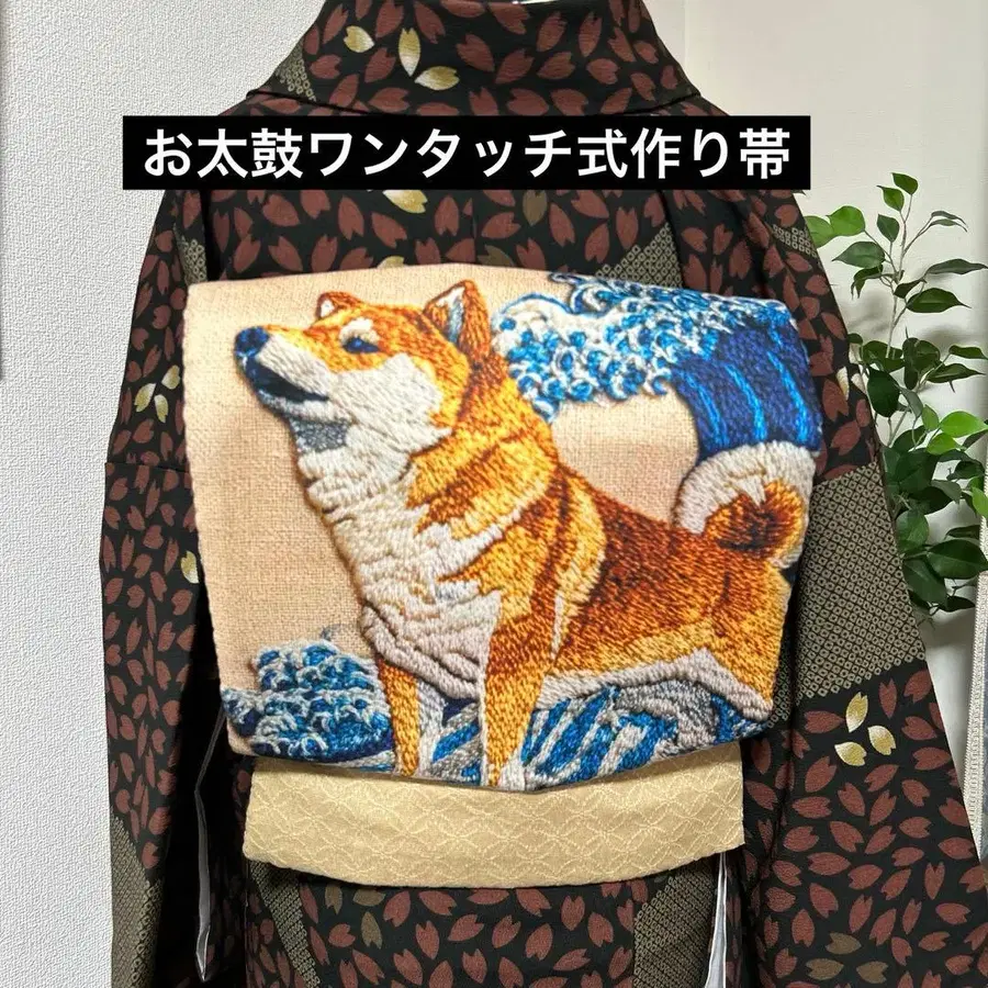 리사이클 상품인 나고야 오비에 원단을 꿰매어 오비(띠)를 만들었습니다.