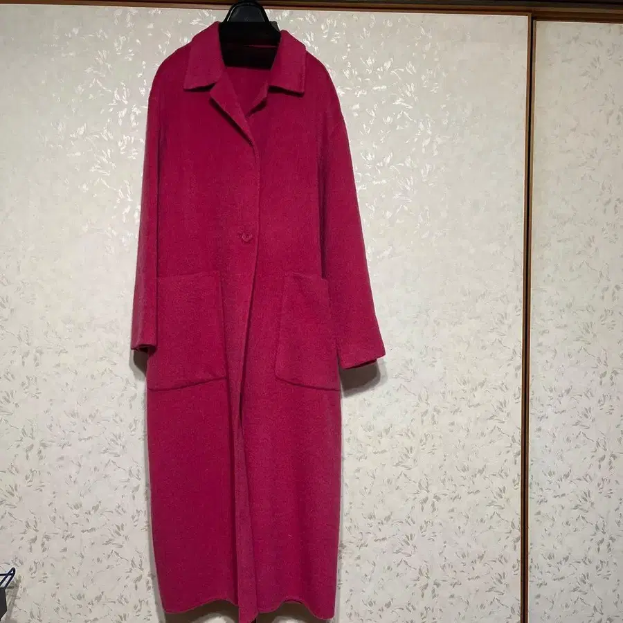 미라 오웬의 핑크 롱 코트 포켓 부착
