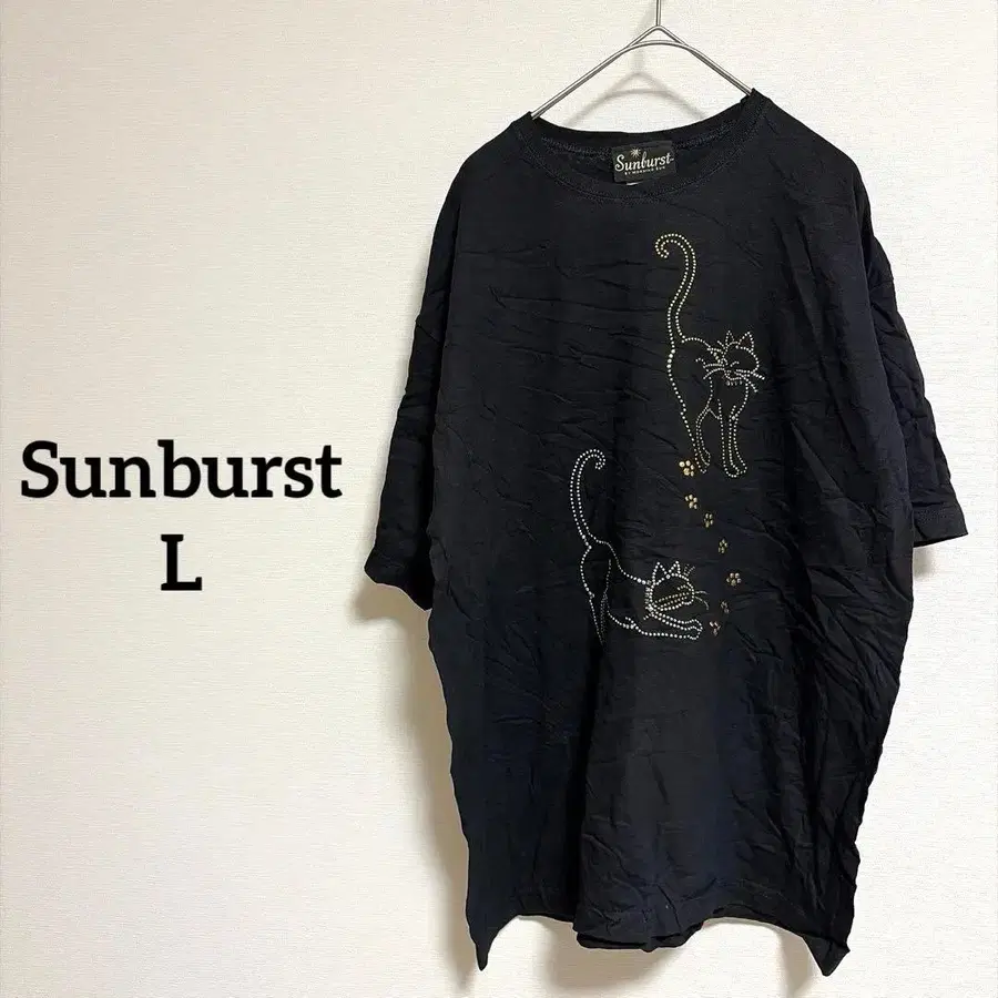 [ 새상품급 ] Sunburst ( L ) 고양이 자수 블랙 T셔츠