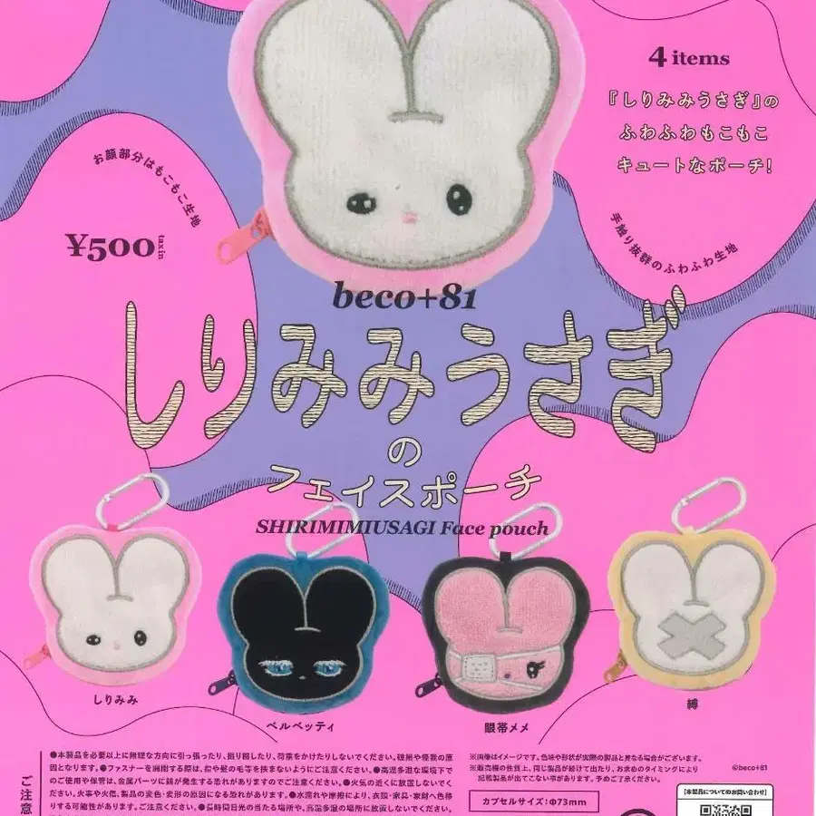 beco+81 엉덩이 귀 토끼 페이스 파우치 캡슐판 전 4종 풀세트