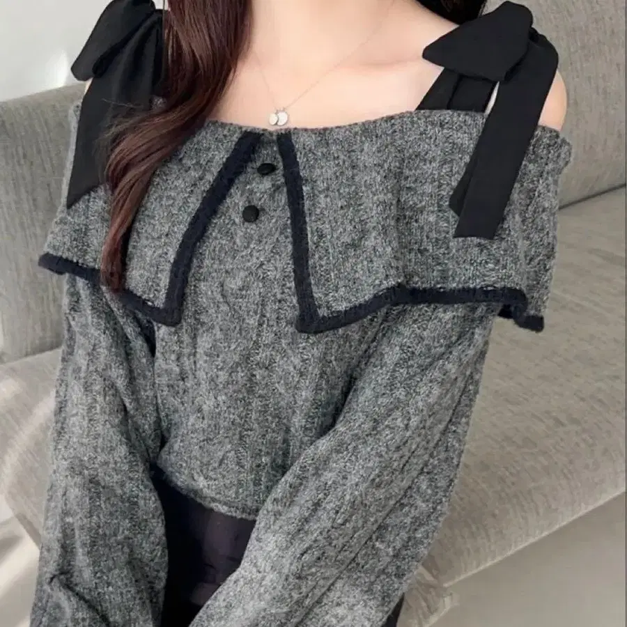 mily bilet 어깨 리본 사용 케이블 짜임 니트