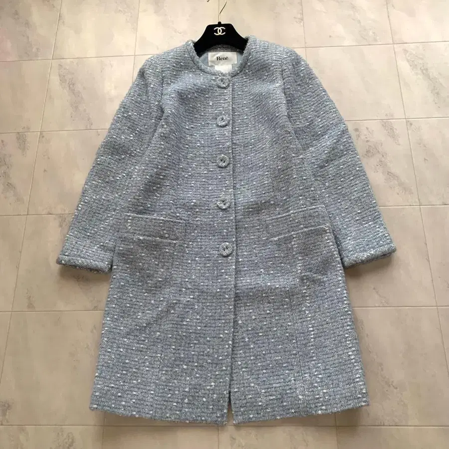 새상품급 르네 TISSUE 노카라 트위드 코트 자켓 블루 36