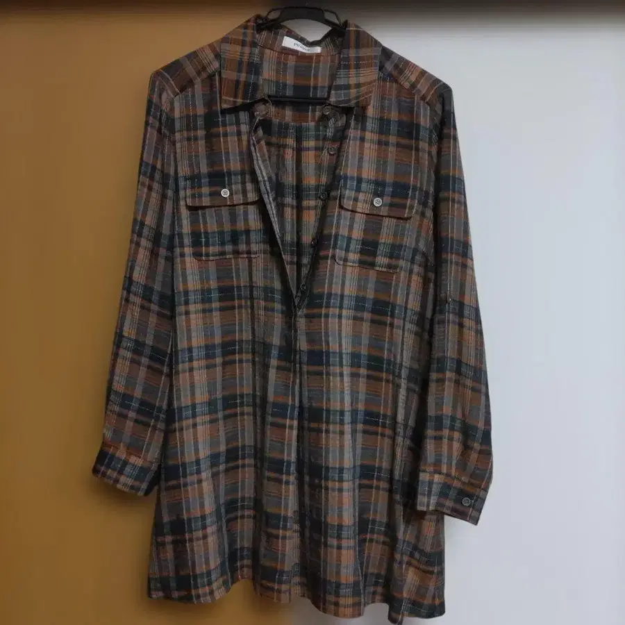 PINORE 긴팔 튜닉 오렌지와 블랙 체크