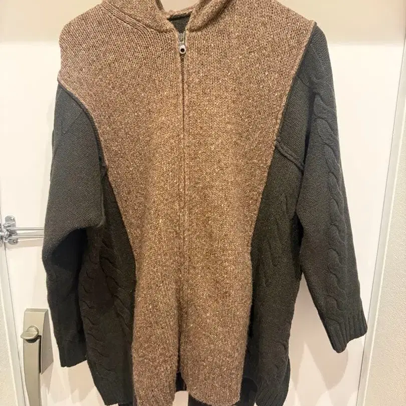 후드 부착 니트 스웨터 브라운 다크 그레이