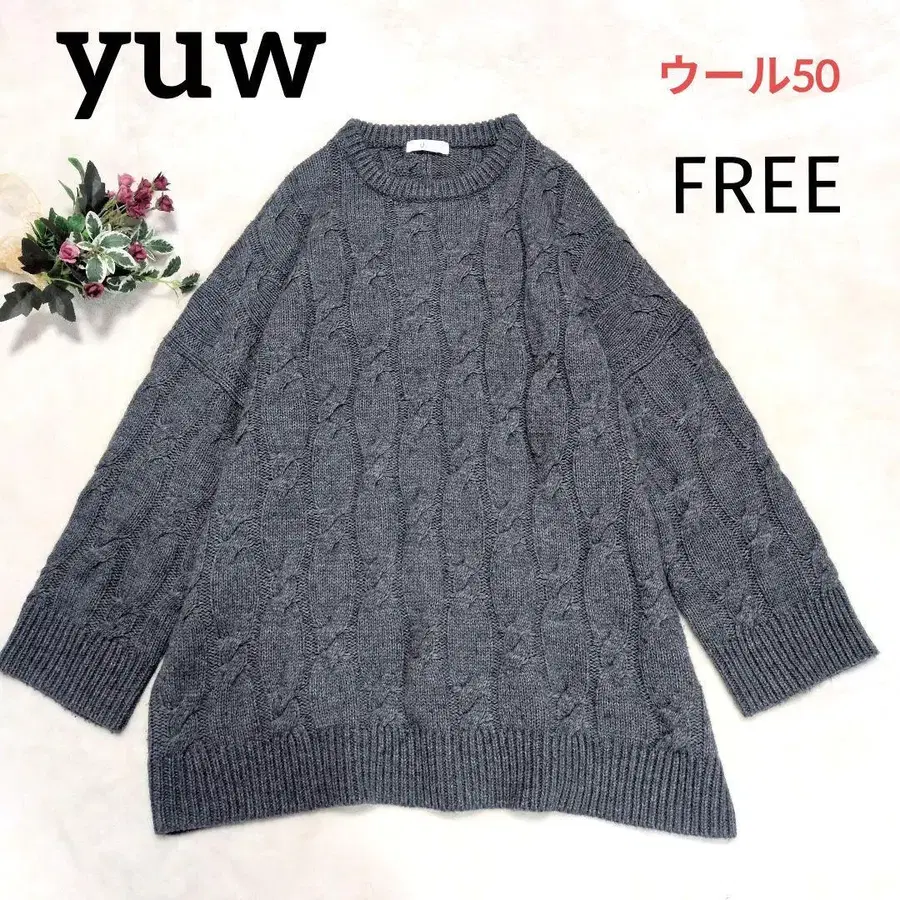 yuw 오버 사이즈 케이블 니트 튜닉 그레이 루즈핏 울