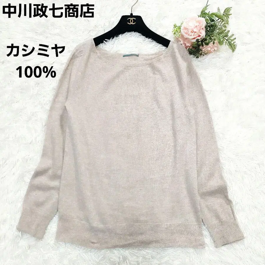 나카가와 마사시치 상점 캐시미어 100% 보트넥 니트 베이지
