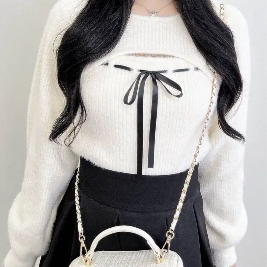 INGNI 잉그 페더 리브 데콜테 오픈 리본 니트 니트