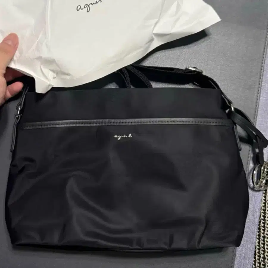 아네스베 나일론 숄더백 블랙 참 사선 크로스백