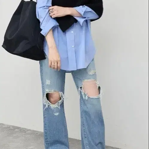 라이트 블루 데미지 스트레이트 데님