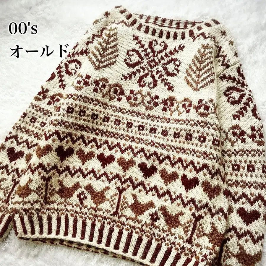 [울 100%] 00년대 노르딕 무늬 손뜨개질풍 니트 유니크 디자인