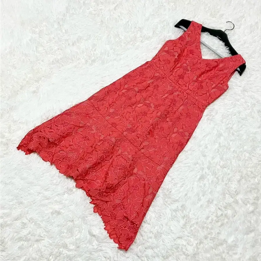 ◯ 특징: 입체감 있는 플라워 레이스가 고급스럽게 장식되어, 고급스럽고 화려한 인상을 연출합니다. 스캘럽 컷의 밑단이 여성스러운 움직임을 더해줍니다.