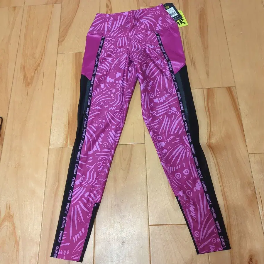 정품 새상품 ZUMBA 줌바 핑크 추상 패턴 레깅스 XS 스패츠
