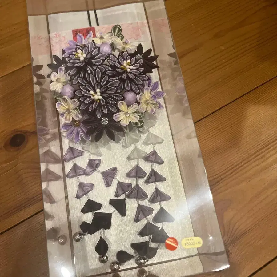 일본 의류용 머리 장식 꽃 모티브 보라색 블랙