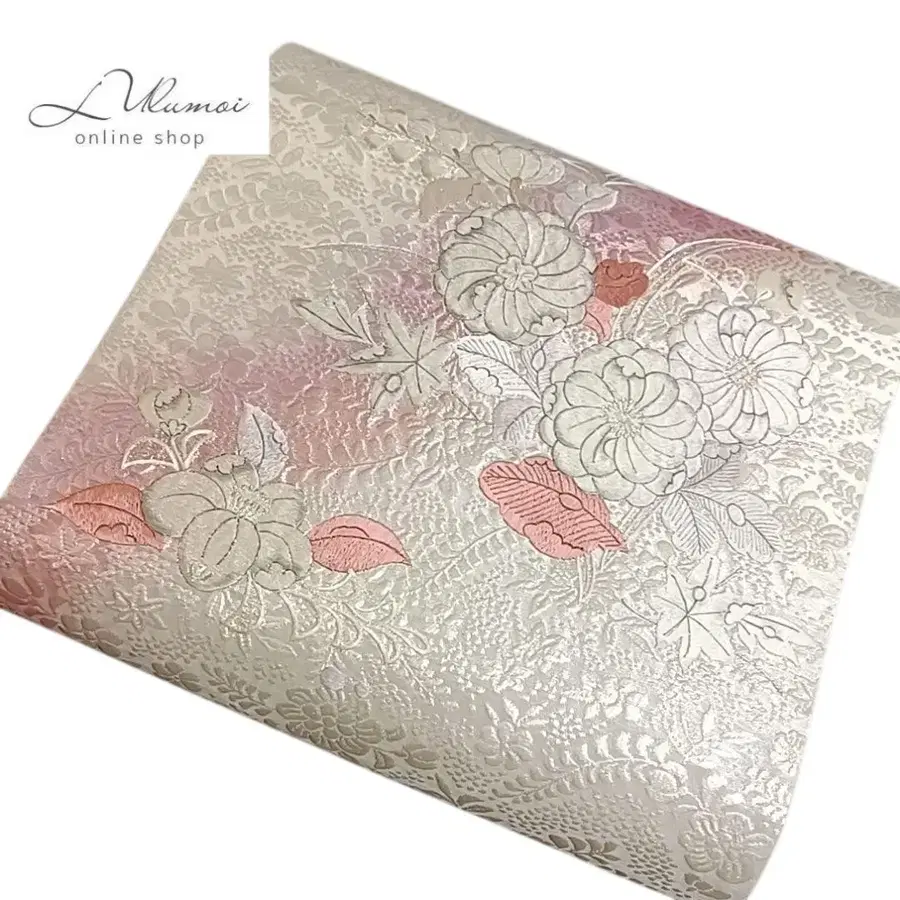 LULU25 후쿠로 오비 츠지가하나 지문 부풀림 직조 꽃 화이트 실버