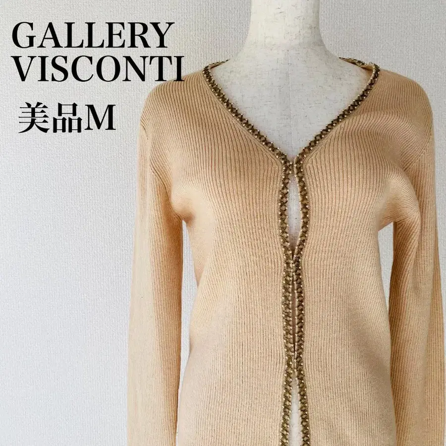 갤러리 비스콘티의 리브 편직 베이지색 가디건, 장식 버튼 포함