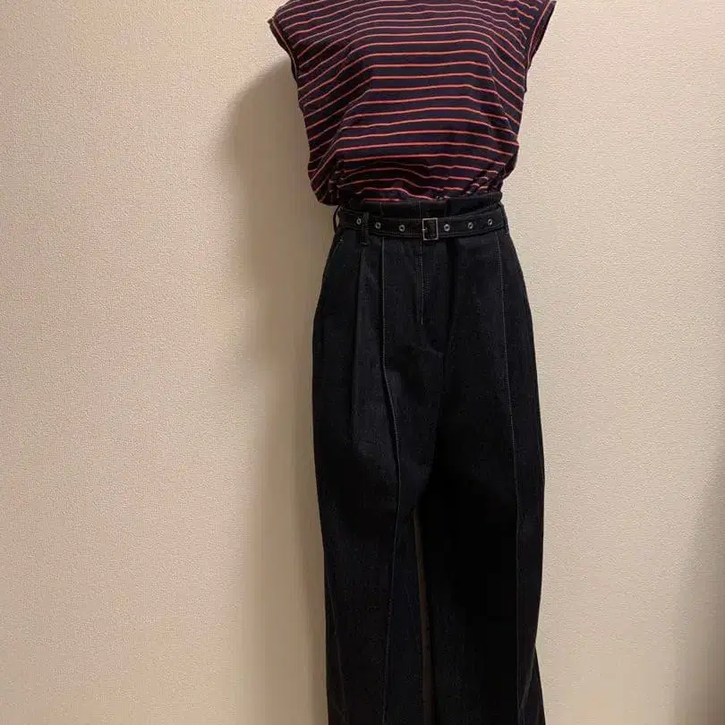 DES PRES 다크 데님 와이드 팬츠 벨트 포함