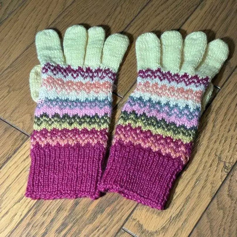 손염색 초목염 털실 손뜨개질 장갑 (크림색 바탕)