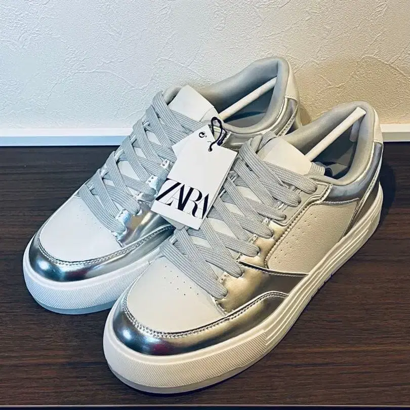 새상품 ZARA 화이트 x 실버 스니커즈 27cm