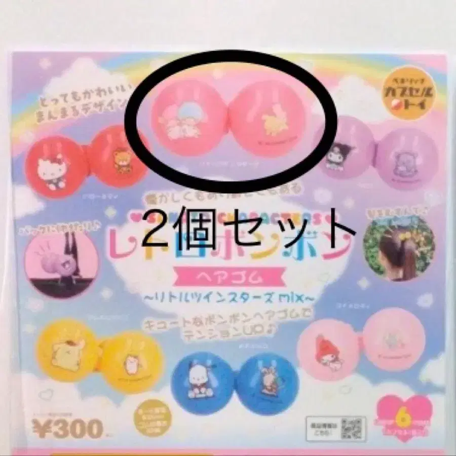 산리오 캐릭터 레트로 모자 꽁지 머리끈 키키라라 2개 세트
