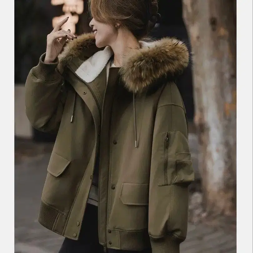 XIAOGULI 올리브 그린 다운 자켓 밀리터리풍 카키