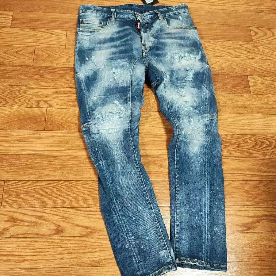 방문해 주셔서 감사합니다. 데미지 가공된 슬림핏 데님, 백 포켓이 있어 스타일리시합니다.