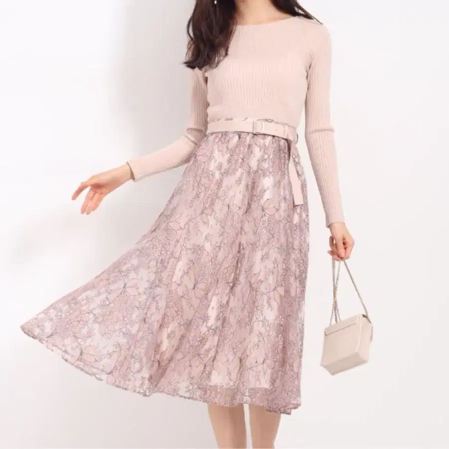 리랜드트루 니트 도킹 꽃무늬 레이스 원피스