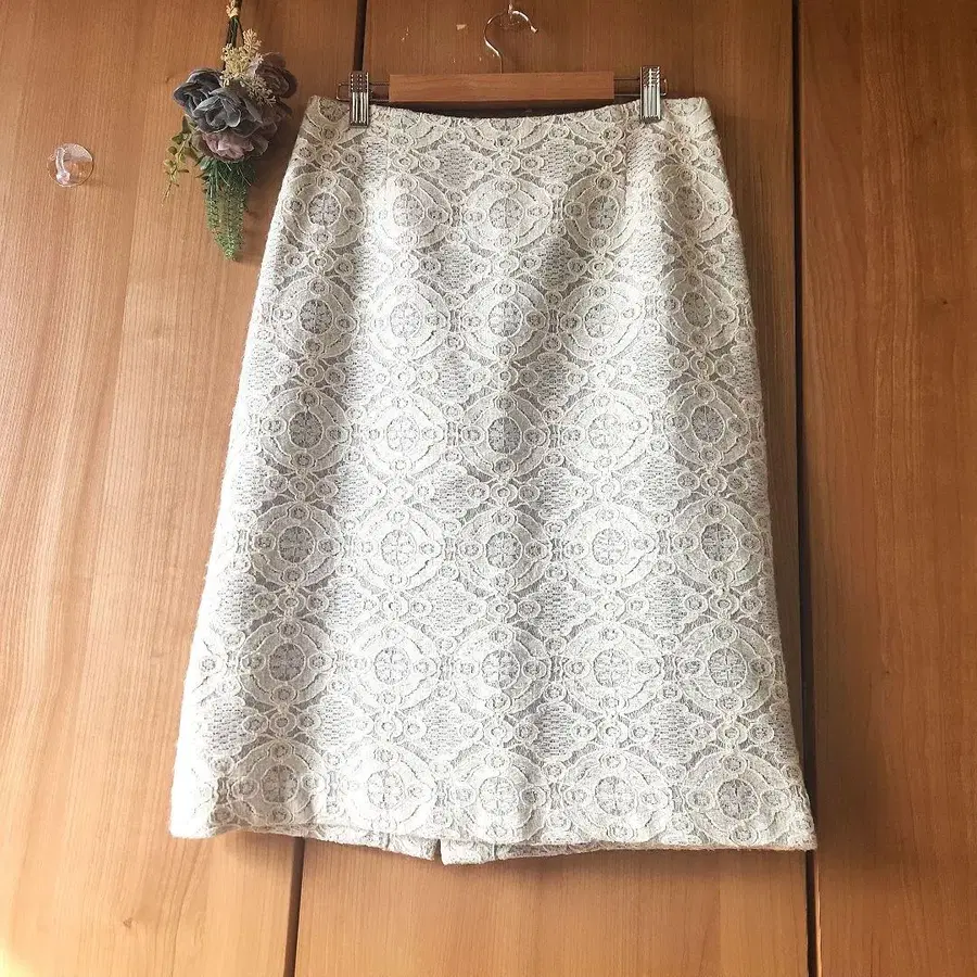 이네드 브랜드의 고급스러운 올 패턴 자수 타이트 스커트입니다.