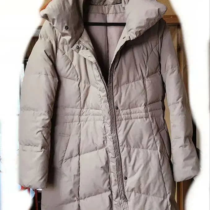 베이지 다운 롱 코트 사이드 포켓 포함