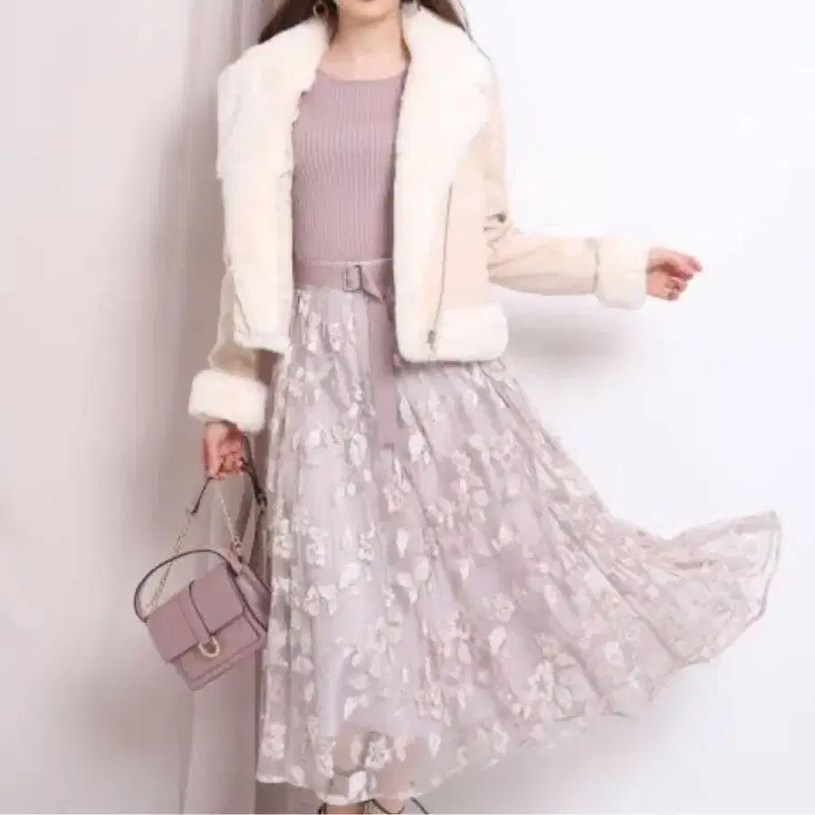 리랜드트루 니트 도킹 꽃무늬 자수 원피스