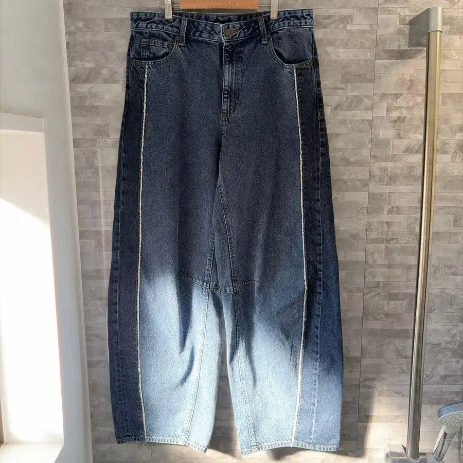 GU 2톤 배럴 레그 진 와이드 팬츠 데님 긴 길이 XXL 사이즈