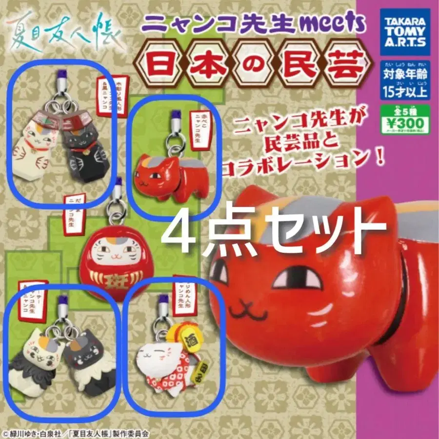 나츠메 우인장 냥코센세 meets 일본 민예 가챠 4종 세트